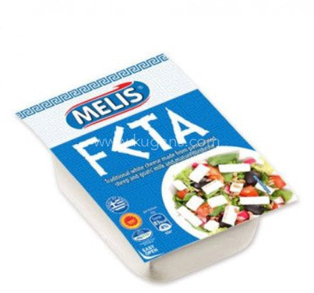 Melis Feta cheese is a brined curd white cheese made in Greece from sheep milk or from a mixture of sheep and goat milk. It is a crumbly aged cheese, commonly produced in blocks, and has a slightly grainy texture in comparison to other cheeses.
