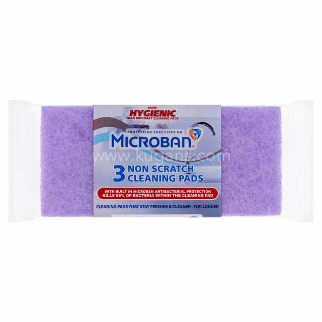 This pack of 3 Microban Non Scratch Pads is designed for effective cleaning without scratching delicate surfaces. Ideal for use on cookware, glassware, countertops, and other household surfaces, these pads feature Microban antimicrobial protection to reduce bacterial growth and maintain hygiene.