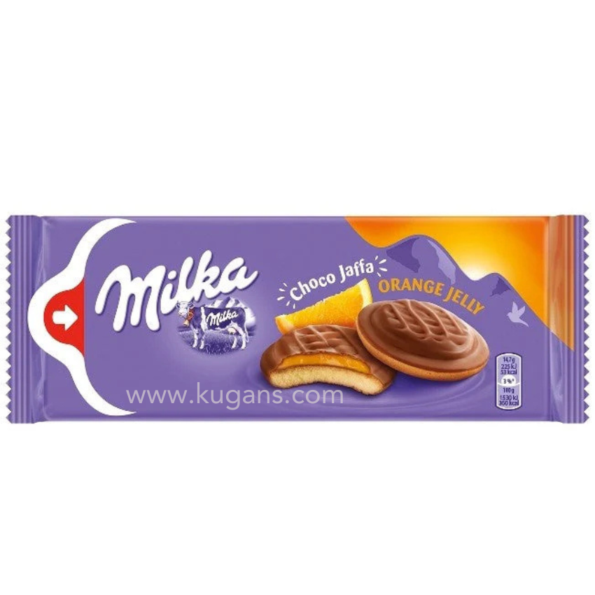 Rich, smooth and indulgent sponge cake with fruit jelly covered by milky Milka chocolate