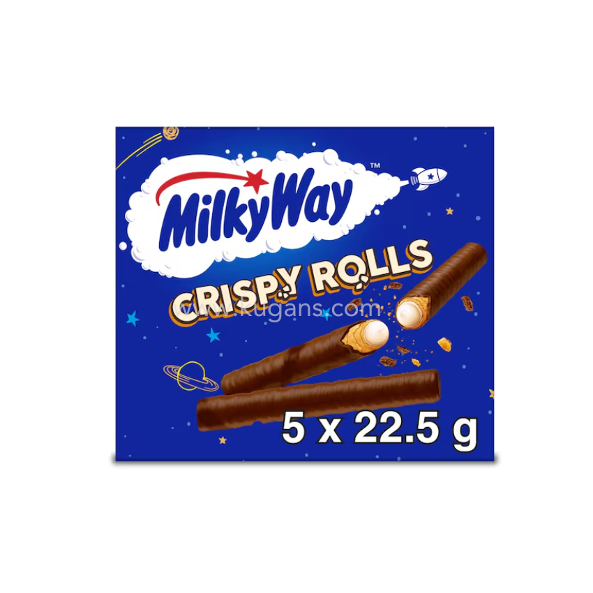This 112.5g pack of Milky Way Crispy Rolls contains delicious wafer rolls filled with creamy Milky Way chocolate and coated in smooth milk chocolate. Perfect for snacking, sharing, or enjoying as a sweet treat anytime, they offer a satisfying combination of crisp texture and creamy chocolatey indulgence.