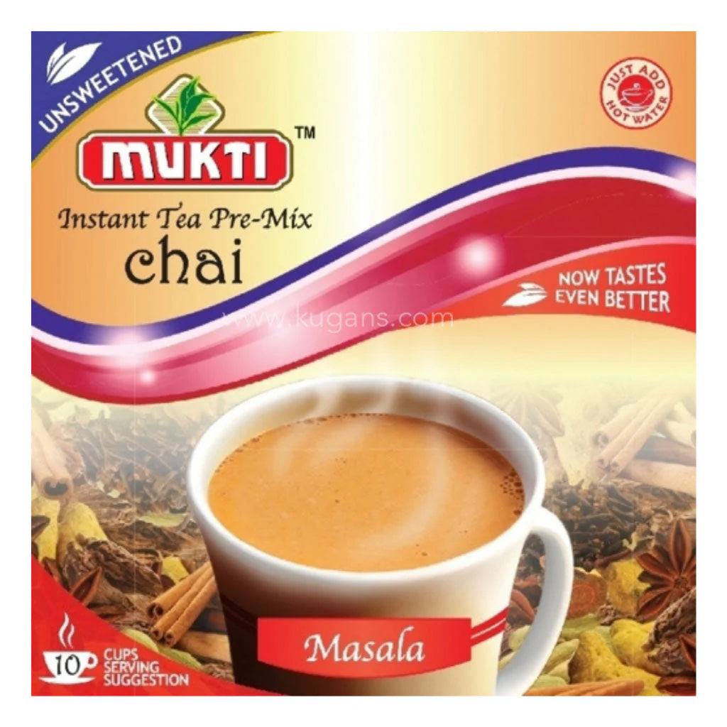 Mukti Instant Tea Pre-Mix Chai Masala Unsweetened 140g is a convenient and aromatic blend of traditional Indian spices, designed for a quick and authentic cup of masala chai. Each 140g pack contains pre-measured sachets that make preparation simple—just add hot water and stir.