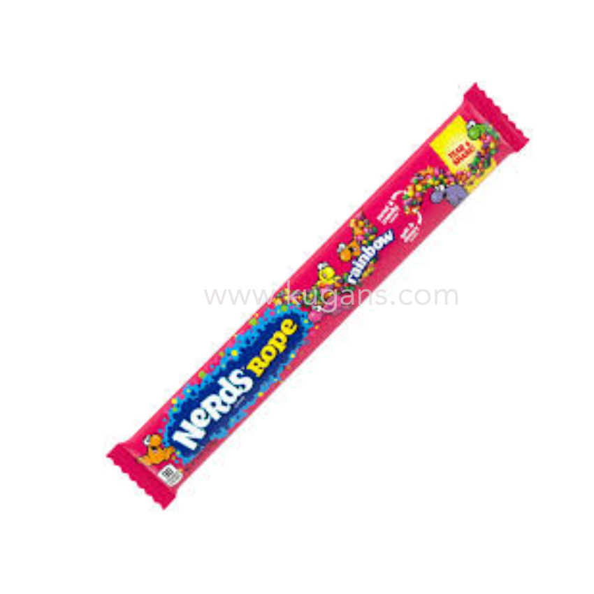 The Nerds Rope Rainbow is a playful and colorful candy that combines a chewy gummy rope with crunchy, tangy Rainbow Nerds candy pieces.