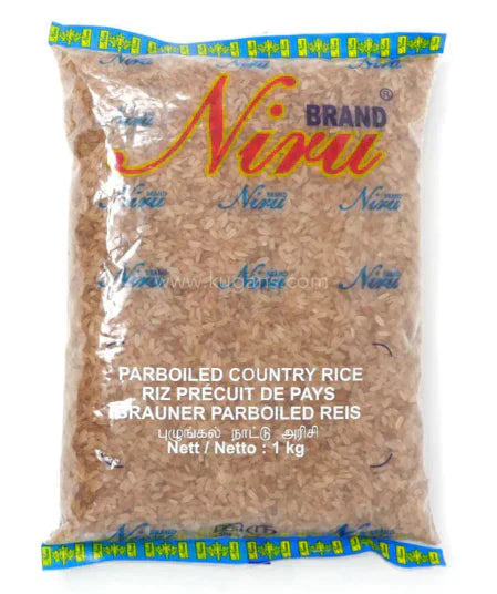 Niru Parboiled Country Rice 1kg is a nutritious, gluten-free rice with firm grains and a nutty flavor. Rich in fiber and minerals, it supports digestive health and energy. Ideal for traditional Sri Lankan meals, it pairs perfectly with curries. Store in a cool, dry place.