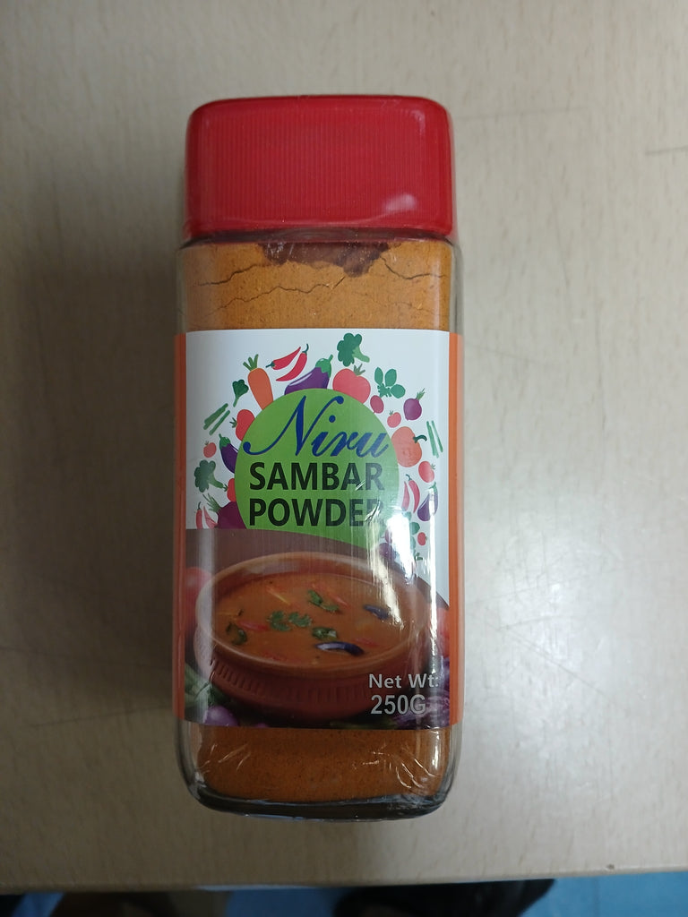 Niru Sambar Powder (250g) is a spice blend made from high-quality ingredients like coriander, cumin, and red chili. It adds rich, authentic flavor to sambar and other South Indian dishes. It’s versatile, enhancing the taste of soups, rice, and vegetables.