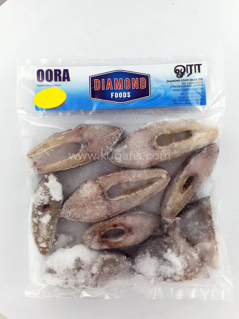 Diamond Oora Steak (700g) is a frozen fish steak made from rabbitfish, known for its firm texture and mild flavor. Ideal for grilling, frying, or baking, it's a versatile and protein-rich seafood option.