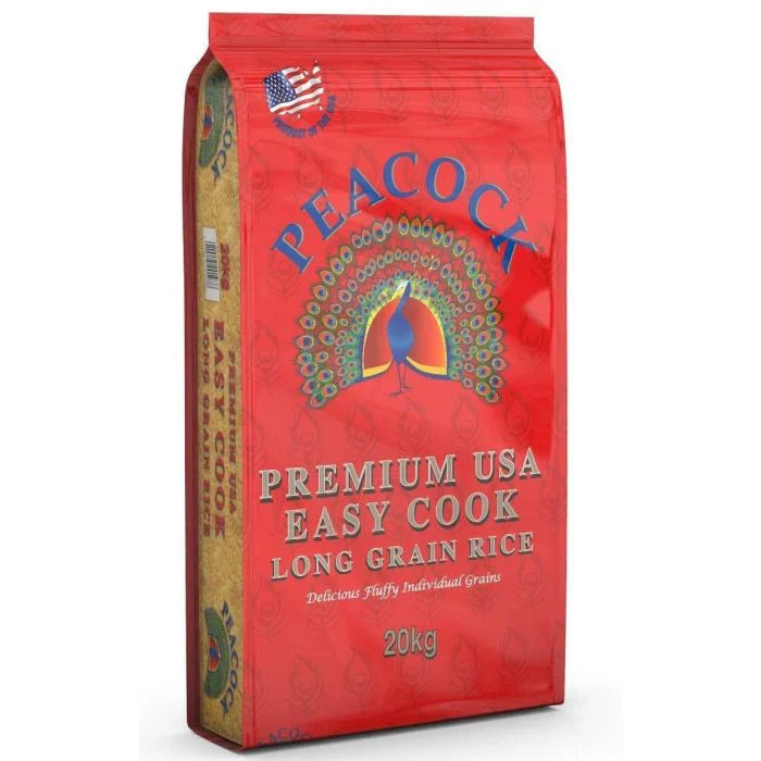 This 20 kg pack of Peacock Easy Cook Long Grain Rice is specially parboiled to ensure fluffy, separate grains every time. Ideal for biryanis, pilafs, and everyday meals, it’s easy to cook and never sticky. A perfect choice for large families, catering, or bulk cooking needs