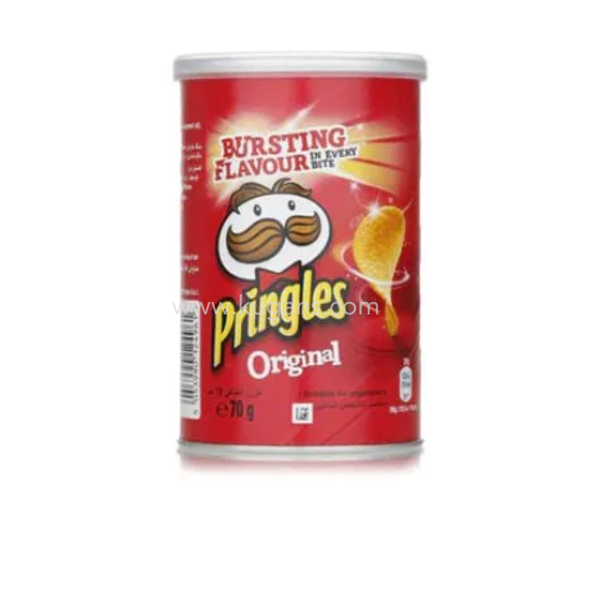 Pringles Original is a can of curved “stackable” crisps made from a blend of dehydrated potatoes (about 42%), wheat, rice, and corn flour. Cooked in vegetable oils (sunflower, palm, corn), lightly salted, and recognized for its unique saddle shape.