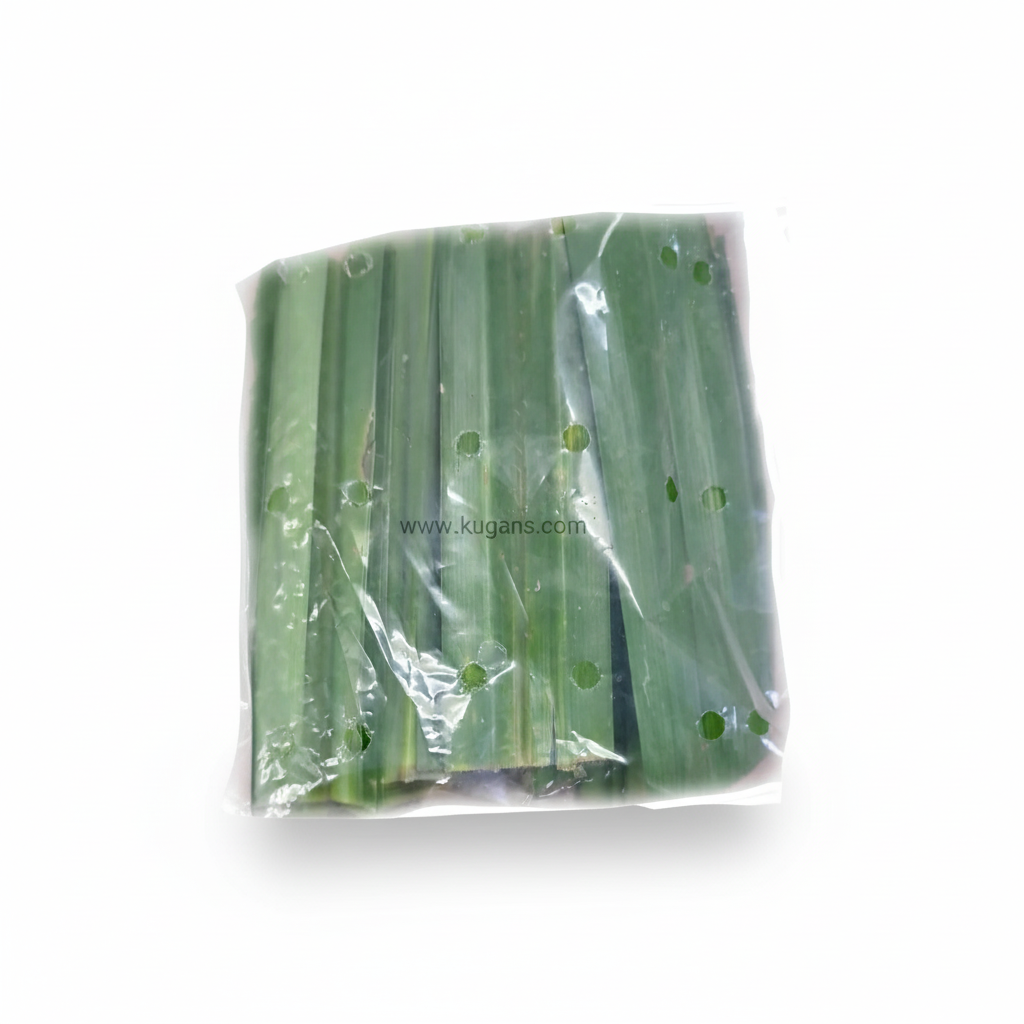 The Rambha Leaf Pack contains one fresh pandan leaf.These long, green, fragrant leaves are highly valued for their natural aroma and flavor-enhancing properties.