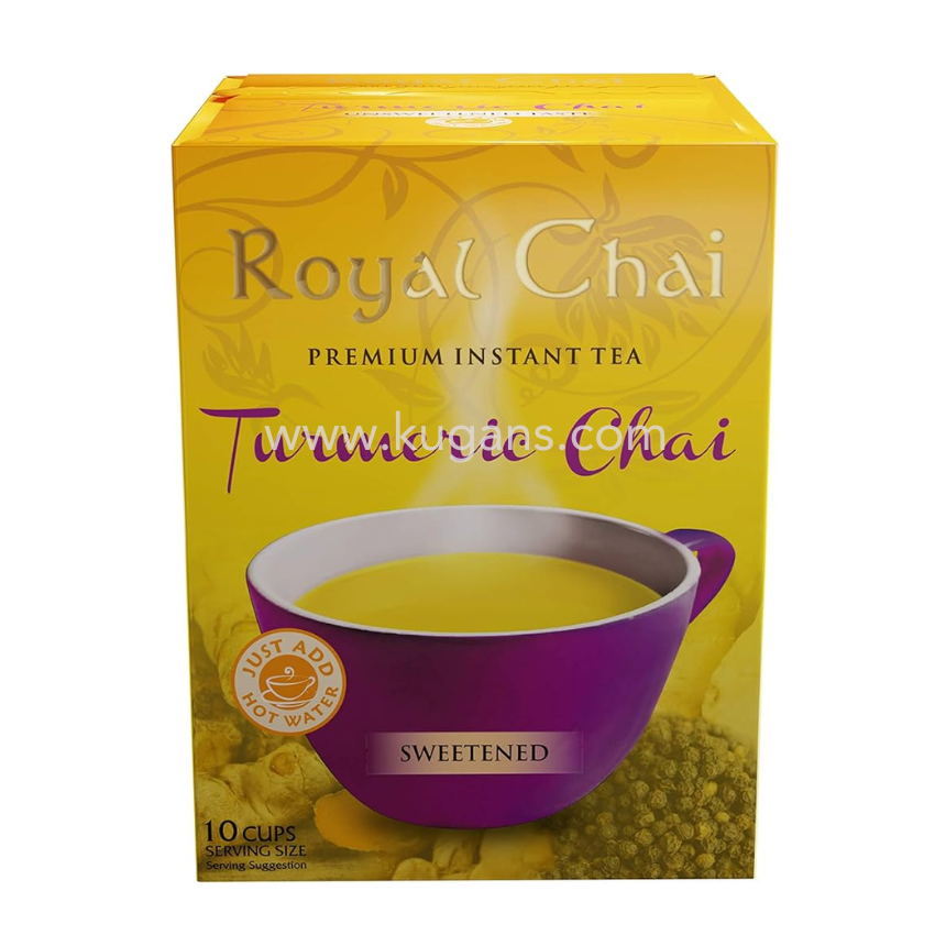 Royal Chai Turmeric Sweet – 10 Sachets is a premium instant chai blend that combines earthy turmeric with aromatic spices like ginger, cardamom, and saffron. Pre-sweetened for convenience, it delivers a warm, soothing, and flavorful cup every time.