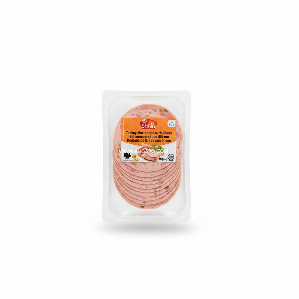 Shaia Turkey Mortadella with Olives is a ready-to-eat turkey cold cut, finely sliced and studded with green olive pieces for a mild, savoury bite. Simply peel back the film, separate the slices and serve chilled in sandwiches, wraps, and salads. For a warm option, place slices briefly in a pan...