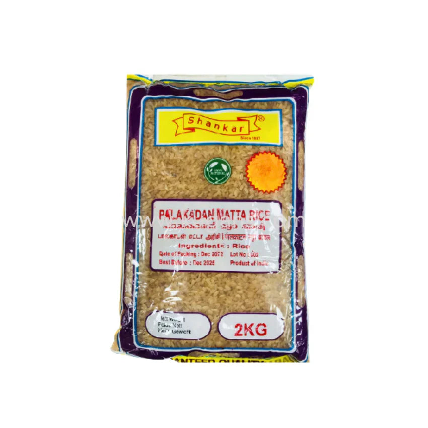 Shankar Palakadan Matta Rice 2kg is a traditional Kerala red rice variety, known for its rich flavor and firm texture. This unpolished, parboiled rice retains its bran layer, making it a healthier choice compared to white rice. It's an excellent source of fiber and essential nutrients, supporting digestive health and providing sustained energy.