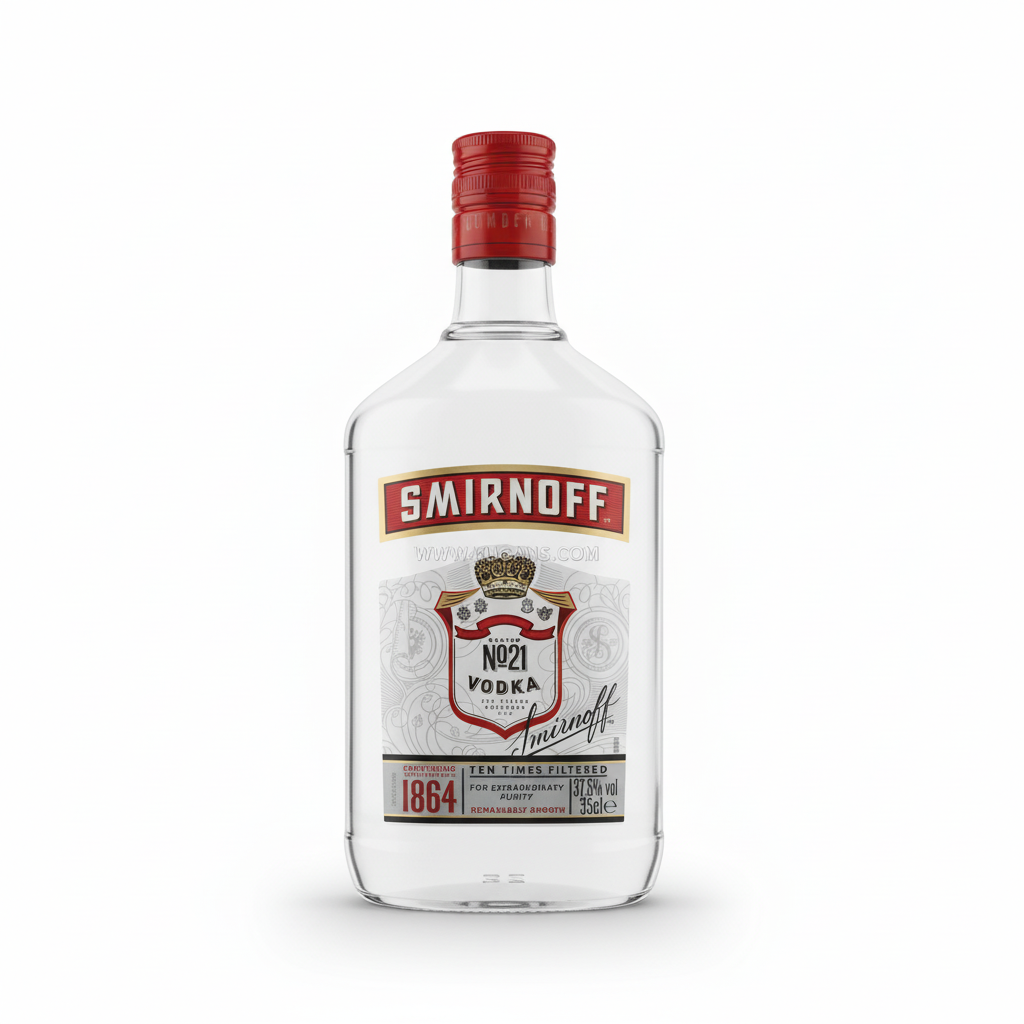 Smirnoff No. 21 Vodka is a clear, smooth spirit distilled and filtered for purity with a clean, crisp finish. Enjoy its neutral profile in mixed drinks and classic cocktails or sip over ice. For best results, chill the bottle, pour a measured serve into a glass with ice, and top with tonic, soda, or fruit juice; or shake with ice and your chosen mixers, then strain to serve. Its balanced character makes it an easy base for martinis, Moscow Mules, spritzes, and long drinks.