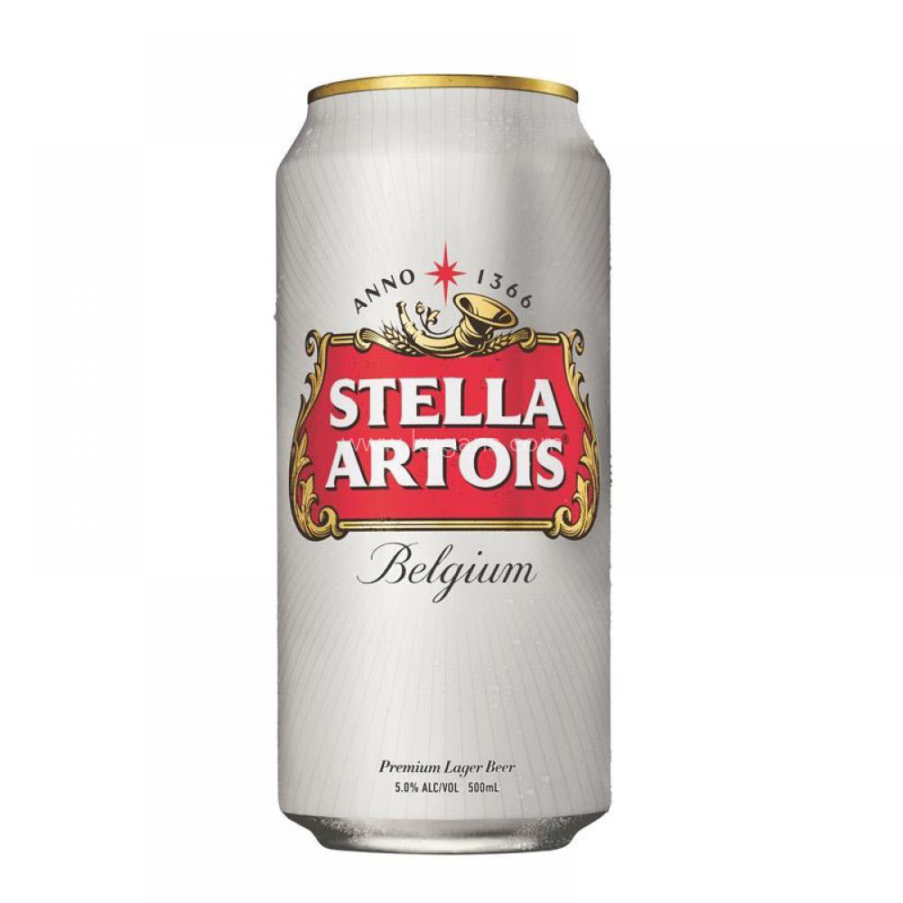 Stella Artois 500ml, Classic Belgian lager, known for its crisp, refreshing taste.