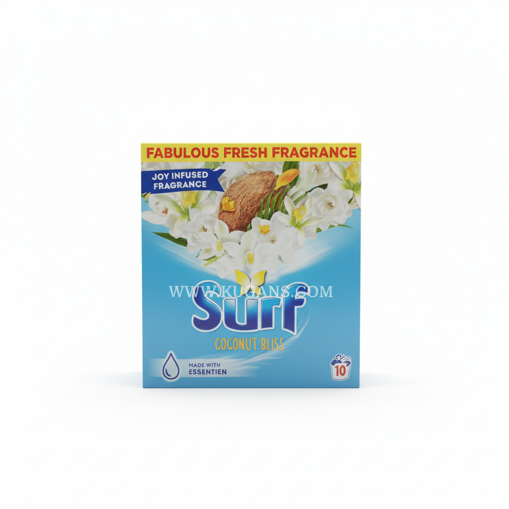 Surf Coconut Bliss is a fragrant laundry detergent available in both powder and liquid forms. The 500 g powder variant offers approximately 10 washes and packs a tropical aroma inspired by coconut and monoï flowers with creamy vanilla notes