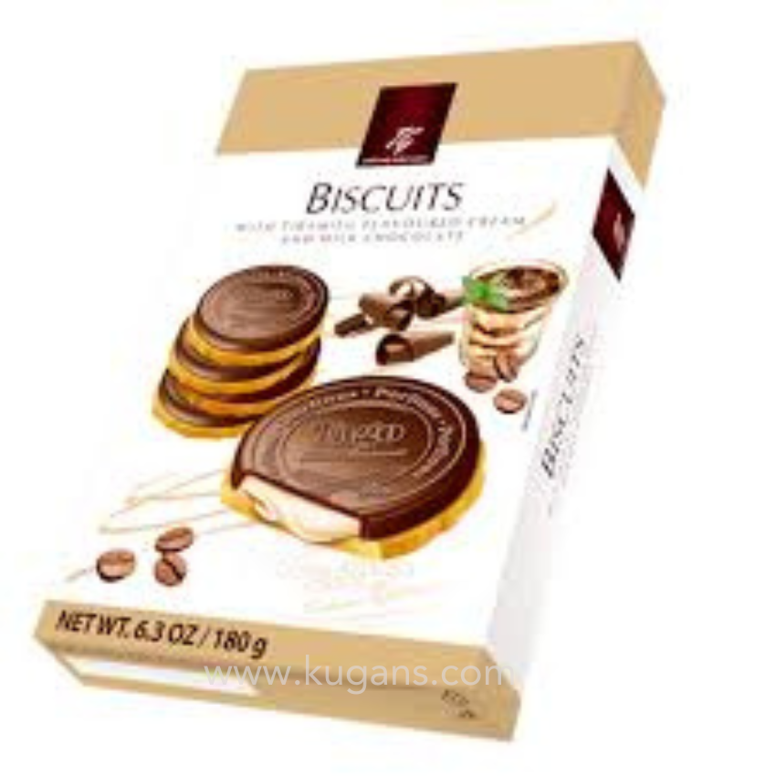 Indulge in the delightful fusion of flavors with Tago Milk Chocolate Tiramisu Biscuits. Each biscuit is generously filled with a rich tiramisu-flavored cream and enrobed in smooth milk chocolate, offering a luxurious treat reminiscent of the classic Italian dessert.