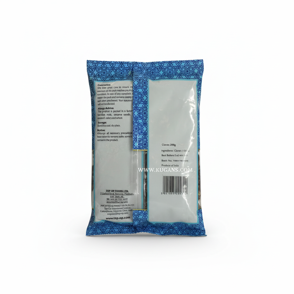 Top Op Cloves are fragrant, hand-selected spice buds valued for their warm, sweet and pungent aroma that enhances both savoury and sweet dishes. Add a few whole cloves to curries, rice, stews or marinades and allow them to simmer so the essential oils gently infuse your recipe. For spice blends, lightly toast and grind before use to release deeper flavour. Use sparingly due to their intensity, and remove whole cloves before serving if desired. They are ideal for flavouring masala chai and baking.