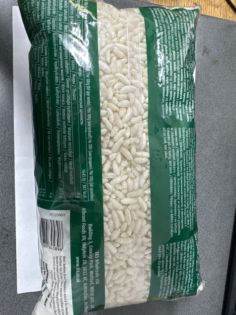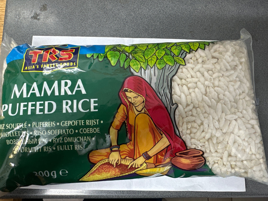 Puffed rice is made from rice kernels that have been heated under high pressure. It is commonly used in Indian snacks, such as Bhel Puri, Sweet Ladoo and breakfast cereals.