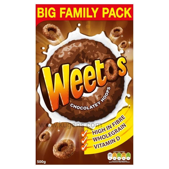 Start your day with the chocolatey crunch of Weetos Chocolatey Hoops! Made with wholegrain wheat and coated in rich cocoa, these delicious hoops are packed with energy and flavour. Perfect for kids and adults alike, they make breakfast fun and satisfying.