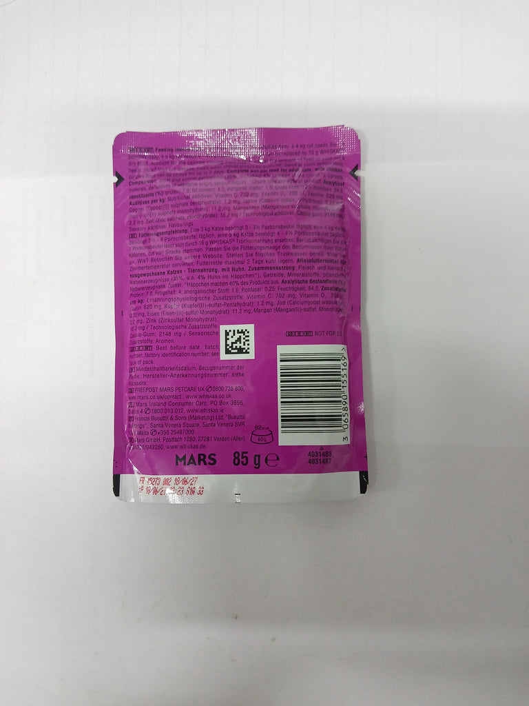 Give your cat a delicious and nutritious meal with Whiskas Chicken in Jelly. Made with tender chunks of real chicken in a tasty jelly, this 85g pouch is specially formulated to provide 100% complete and balanced nutrition for adult cats. It’s rich in vitamins and minerals to support overall health and keep your feline happy and satisfied.