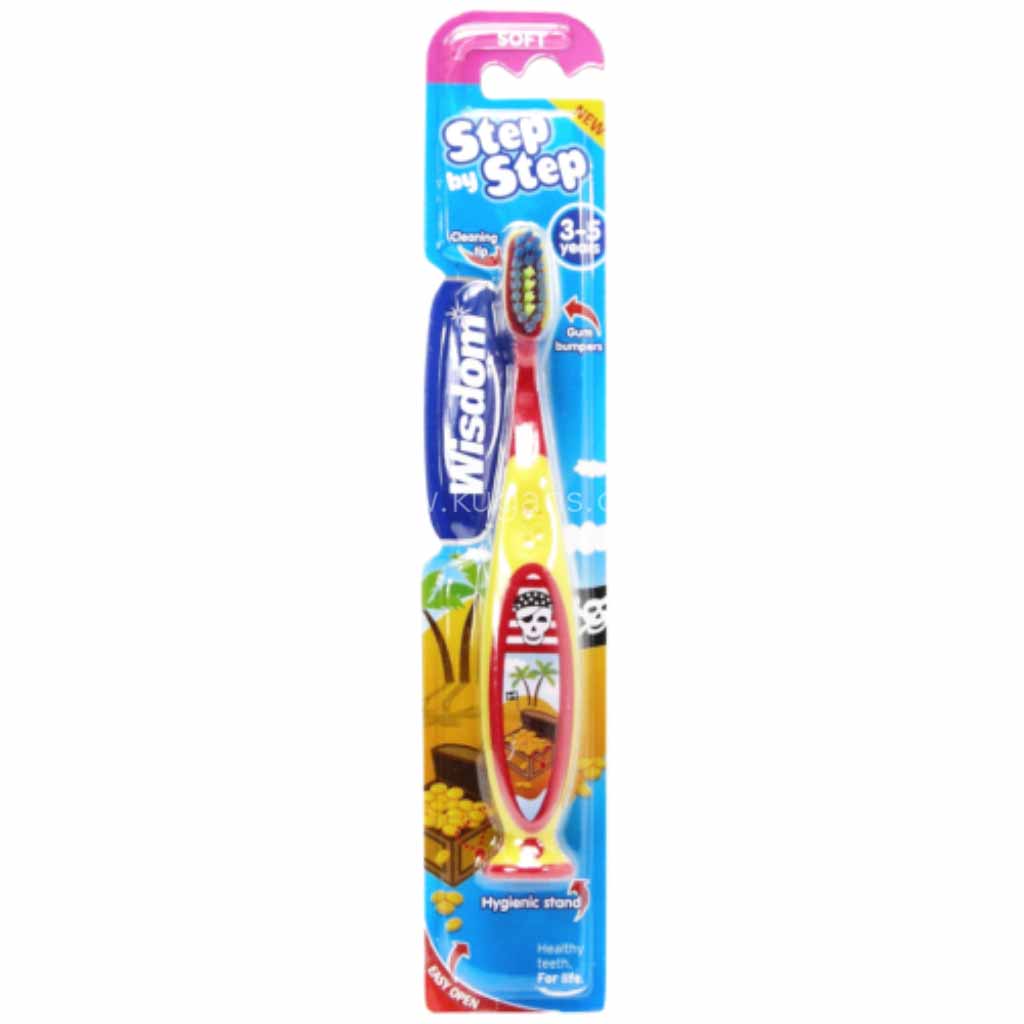 Step by Step 3-5 years is specially designed to clean milk teeth. It features a compact head with raised tip to easily clean around milk teeth and gum bumpers to help protect delicate gum tissue whilst brushing.